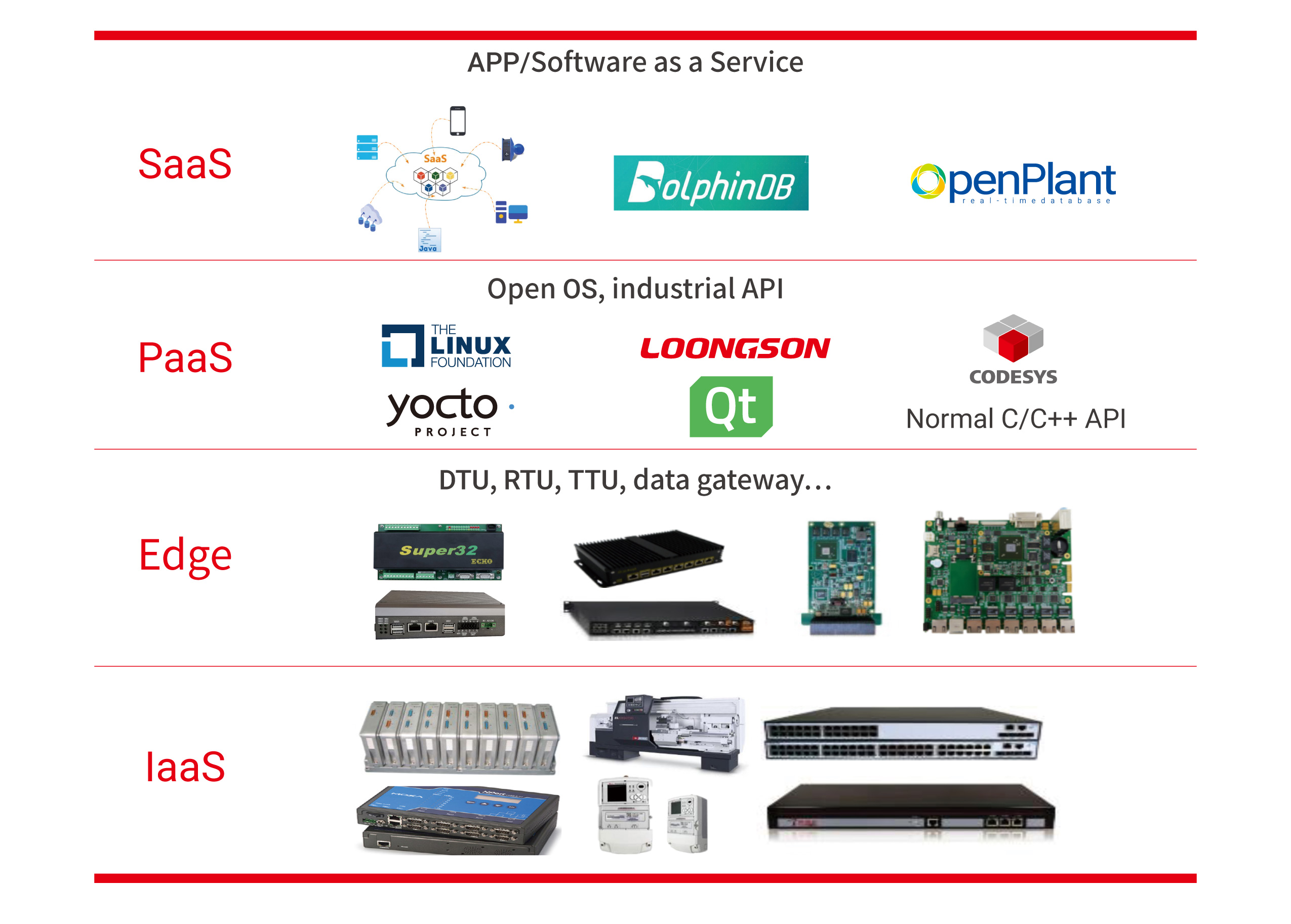Loongson provides various system-level solutions in aspects including equipment, edge, control, and application. The products based on Loongson processors, including data acquisition equipment, RTU, industrial edge gateway, PLC, DCS core controller, industrial core controller, industrial robots, and CNC, have been applied in industrial control, energy, rail transit industry, water conservancy, and other fields.