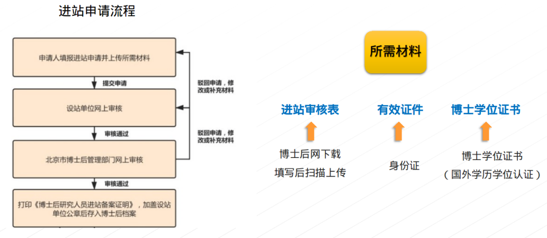 進站申請流程詳情請見政策文件《北京市博士後進出站工作審核程序和注意事項》