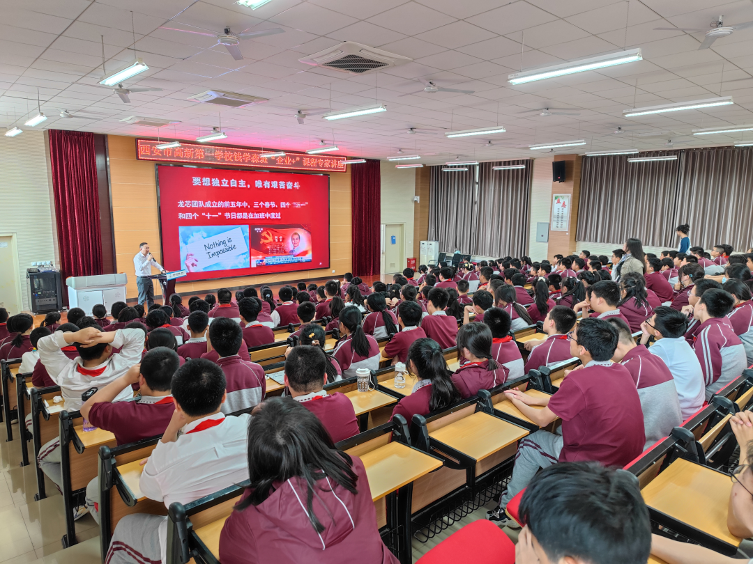 4月26日,新利体育18官方网站教育事業(ye) 部總經理楊昆來到西安高新第一學校,為(wei) 學校300餘(yu) 名初一師生作“青少年科普-計算機與(yu) 芯片”主題演講。他表示龍芯教育的目標是推動中小學生從(cong) 用“國外”計算機到用“國內(nei) ”計算機,培養(yang) 中小學生形成自主思維意識。