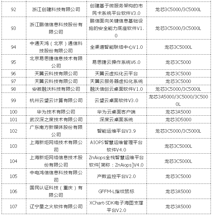 2024年1-2月,龍芯桌麵和服務器平台新增76家企業(ye) 的107款適配產(chan) 品。