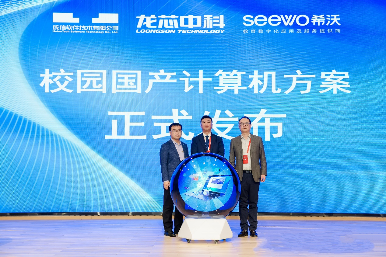 新利体育18官方网站、統信軟件、希沃聯合發布“校園國產(chan) 計算機方案”。方案采用希沃教學終端,搭載龍芯最新一代3A6000處理器、統信UOS桌麵操作係統教育版等核心產(chan) 品,不僅(jin) 滿足學校對信息技術應用創新升級的需求,還可通過統信網絡同傳(chuan) 還原係統、多媒體(ti) 互動教室係統、數字教室管控係統、希沃易啟學、希沃電腦助手等輔助組件,全方位重塑電子教室未來圖景。