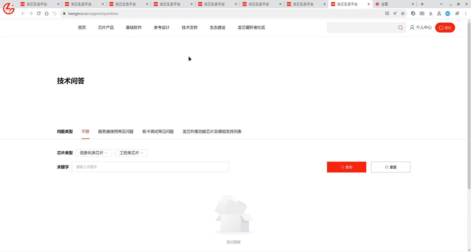 龍芯生態平台開放了技術問答頁麵,訪問者可瀏覽各種常見問題解答、反饋問題、查看問答關(guan) 聯的產(chan) 品信息,縮短技術服務鏈條。