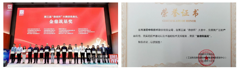 論壇對為(wei) 第三屆“鼎信杯”大賽做出突出貢獻的企業(ye) 進行表彰,新利体育18官方网站榮獲“金鼎築基獎”。值得一提的是,龍芯3D5000服務器為(wei) 大賽提供了安全穩定的信創比賽環境,同時,龍芯技術專(zhuan) 家為(wei) 參賽選手進行專(zhuan) 業(ye) 培訓支持。