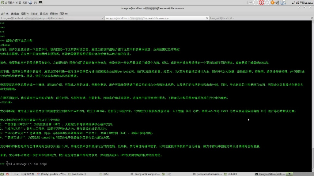 龍芯3C6000/D雙路服務器成功啟動DeepSeek