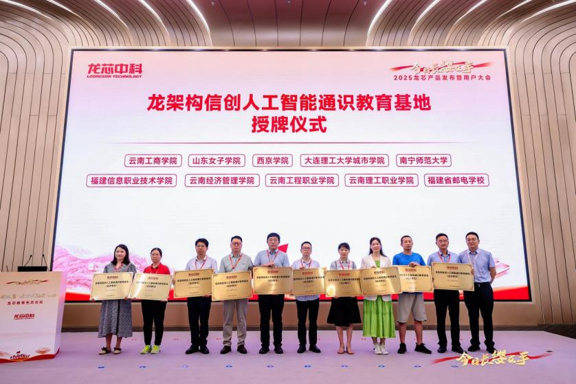 首批試點單位已於(yu) 2025河南省信創與(yu) 人工智能新質發展大會(hui) 、2025龍芯產(chan) 品發布暨用戶大會(hui) ——龍芯教育生態論壇現場授牌,新利体育18官方网站將聯合生態夥(huo) 伴共同支持上述試點單位人工智能通識教育建設,為(wei) 意向合作高校提供人工智能通識教育一體(ti) 機,整體(ti) 方案落地由新利体育18官方网站攜生態夥(huo) 伴與(yu) 校方共同投入、共同建設。校方需配套強、弱電安裝環境,以及對應的師資、課程安排,以順利完成課程開設。