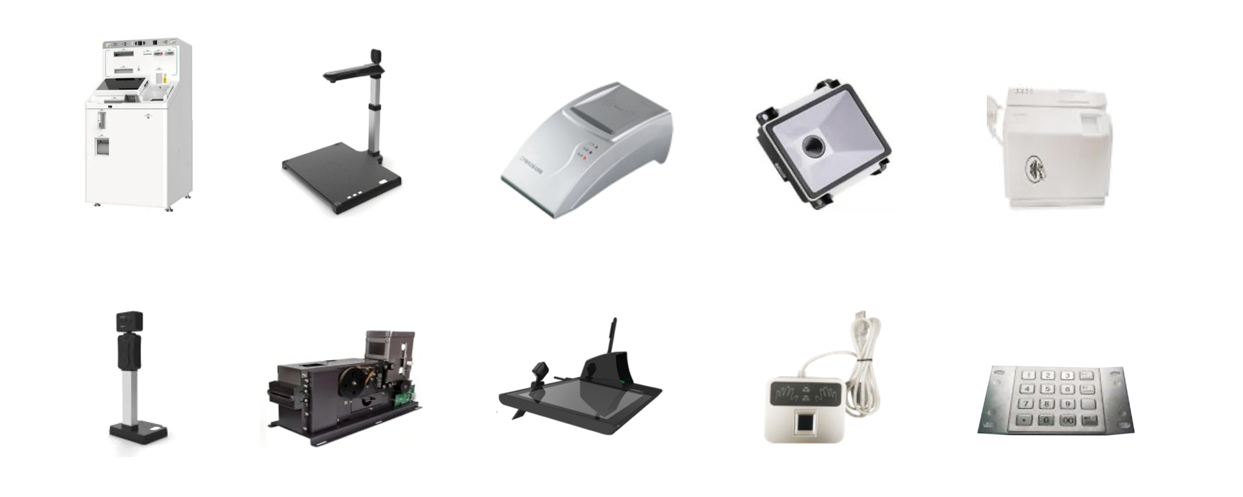 櫃麵外設適配種類豐(feng) 富滿足實際使用需求,如身份證、打印、製/發卡、讀卡、高拍、手寫(xie) 簽批、指紋、金屬密碼鍵盤、二維碼、雙目攝像頭等。